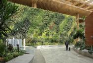 Reflecting Bengaluru City's global renown for its picturesque parks, the flora that adorns the terminal's interior includes 600-800 year-old-trees and over 180 rare, endangered and threatened species. Adding to the garden-like environment is the use of natural materials including bamboo cladding and local natural stone. Lush internal and external gardens punctuate the passenger's journey, with the centrepiece being a 10-metre-tall green wall running the length and breadth of the terminal, adorned with over 450 plant species.