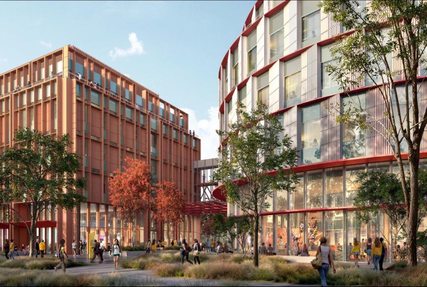 The two new contemporary six-storey buildings feature state-of-the-art teaching and research facilities, retail outlets, cultural and student-focused spaces, and dedicated areas for both new and existing industry partners. The structures will be physically connected by a series of elevated bridges on the upper levels, designed to foster interaction and collaboration among students, staff and research partners.