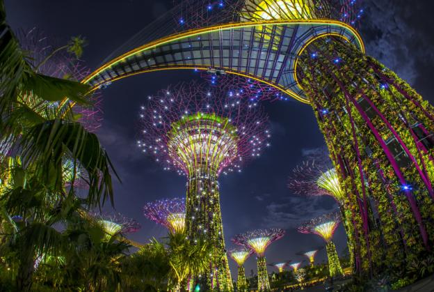 Grant Associates led a multiple-award-winning team (including Tenderstream member Wilkinson Eyre as architect) for the design of Gardens by the Bay in Singapore. The project was described by Sir David Attenborough in his Planet Earth 2 series as ‘perhaps the most spectacular example of city greening’. The masterplan was inspired by Singapore’s national flower, the orchid, but what lay behind the design of the futuristic Supertree Grove?